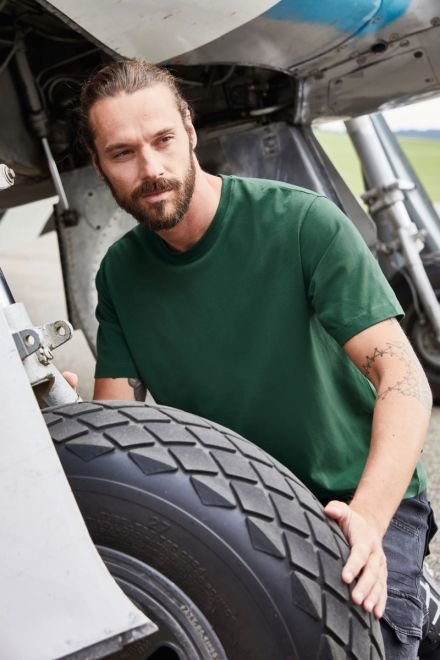 Zaštita od sunca prema propisu o toplinskoj zaštiti • pamučna rastezljiva majica s UV zaštitom UPF 50+ • okrugli izrez • rebrast izrez • perivo na 40 °C • sušenje u sušilici na niskim temperaturama