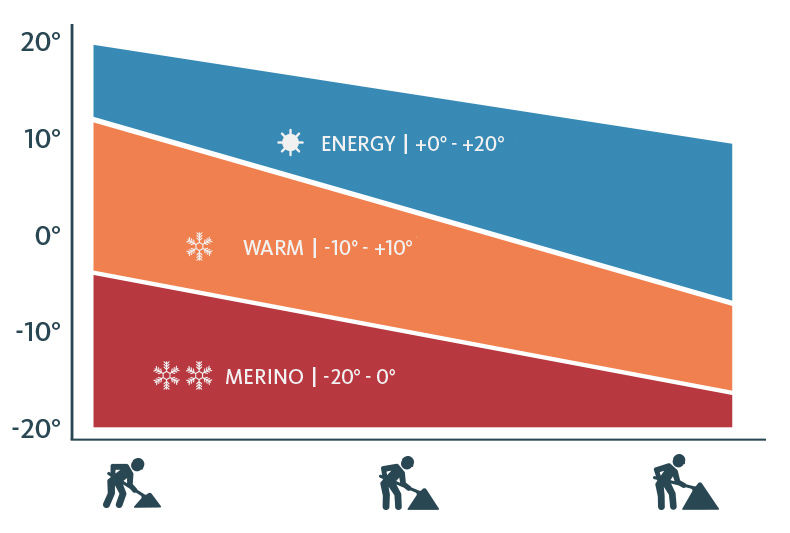 Naša serija obuhvaća tri varijante, od kojih je svaka precizno prilagođena različitim namjenama uporabe. To omogućuje svakom članu tima da odabere osnovni sloj koji najbolje odgovara njegovom zadatku, temperaturnom rasponu i razini udobnosti.